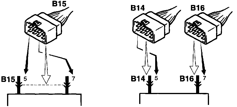 3. Terminals in one connector (Broken line) (B15)/Terminals in different connectors (B14,B16)