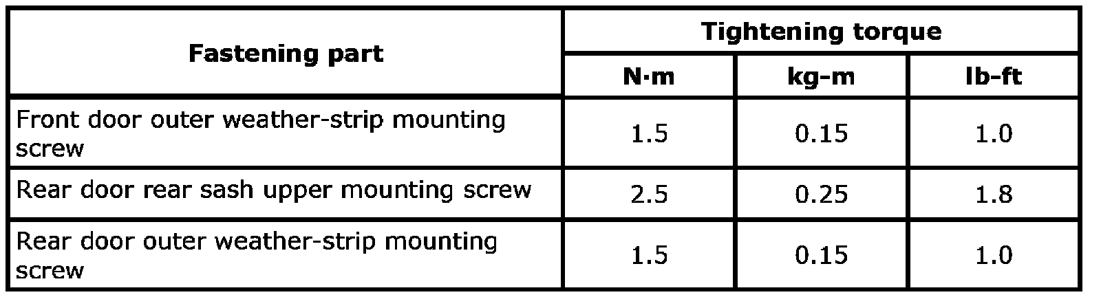 Tightening Torque Specifications