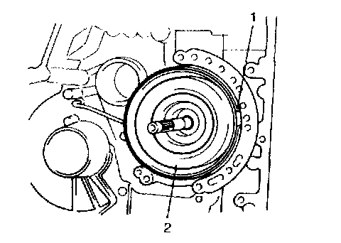a. Install torque converter (1), using care not to damage oil seal of oil pump.