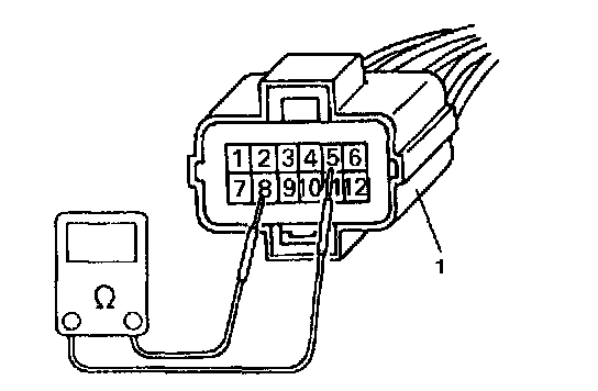 2. Check resistance between each pair of terminals of disconnected coupler (1) as listed in the table.