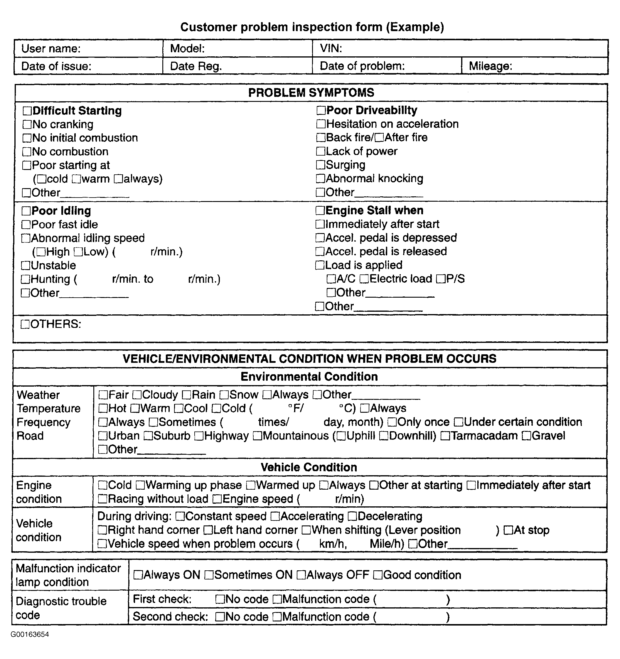 - Perform customer complaint analysis. For aid in asking appropriate questions, use customer problem inspection form. See Fig 1. Go to, next step.