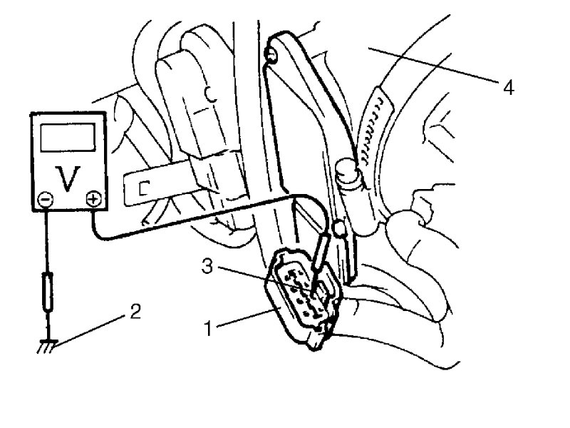 3) Connect voltmeter to "GRN" wire terminal (3) of MAF sensor coupler (1) disconnected and ground (2).