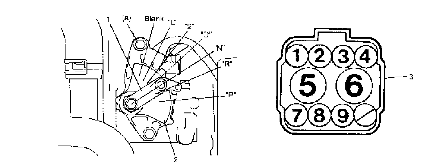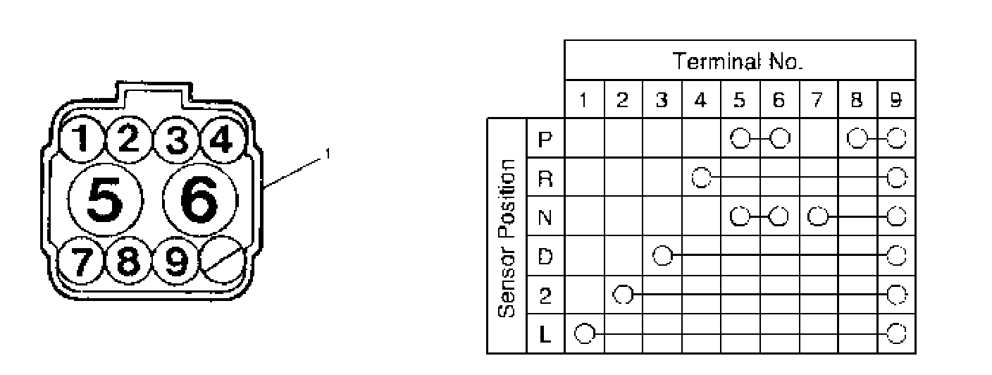2. Connect ohmmeter between 7 and 9 terminals of disconnected transmission range sensor connector (3).