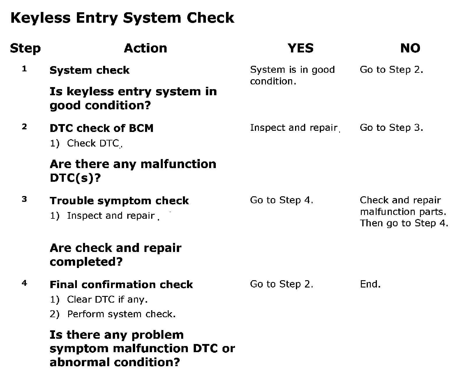 Keyless Entry System Check