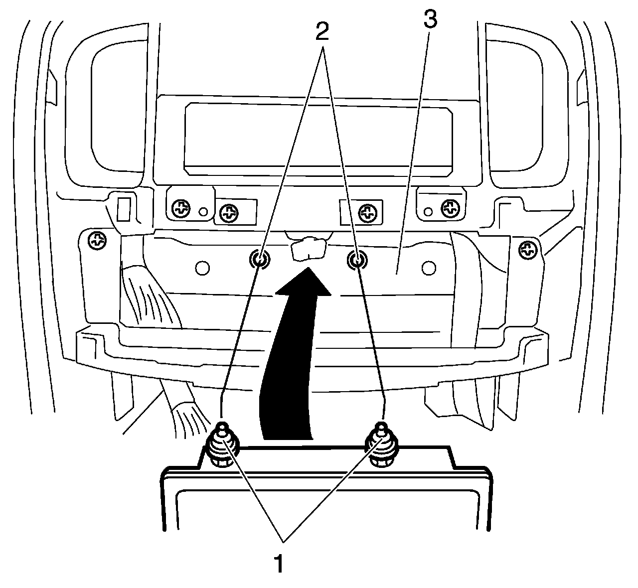 - When installing center garnish, align rubber bushing (1) with BCM installation hole (2) of instrument panel member (3).