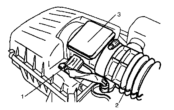 1. Disconnect negative cable at battery and coupler (1) from MAF sensor (3).
