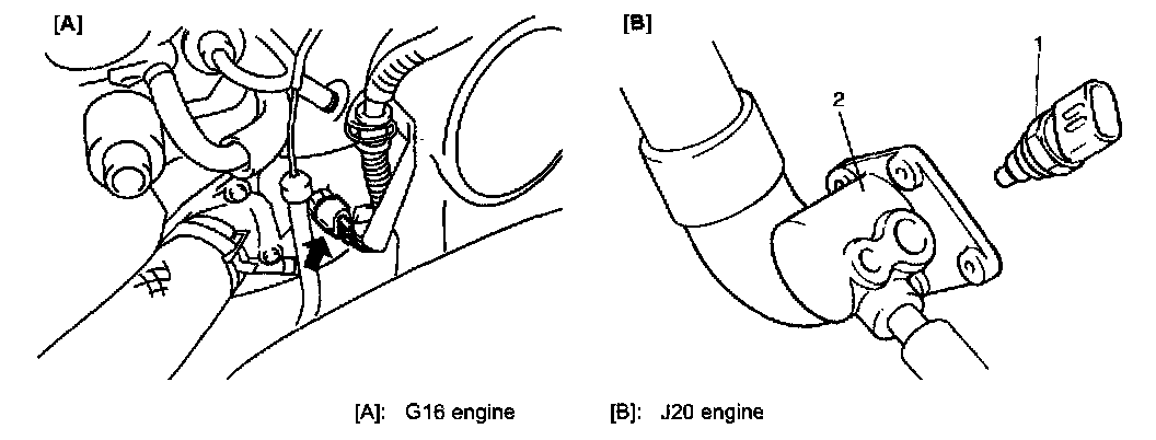 Engine Coolant Temperature (ECT) Sensor (1) is located at the side of intake manifold or on the coolant outlet pipe.