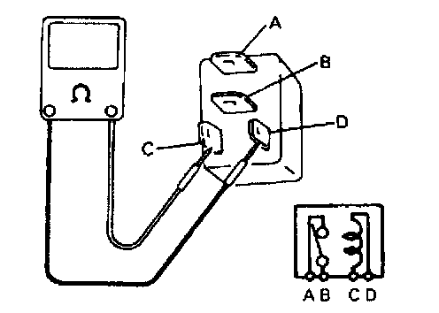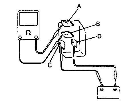 4. Check that there is continuity between terminals "A" and "B" when battery is connected to terminals "C" and "D". If malfunction is found, replace.