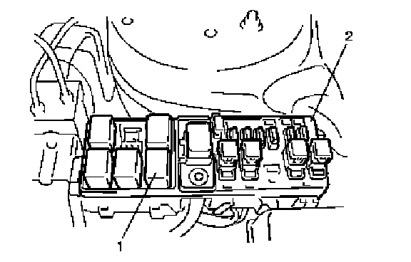 2. Remove main relay (1) from relay box (2).