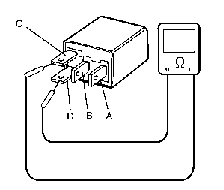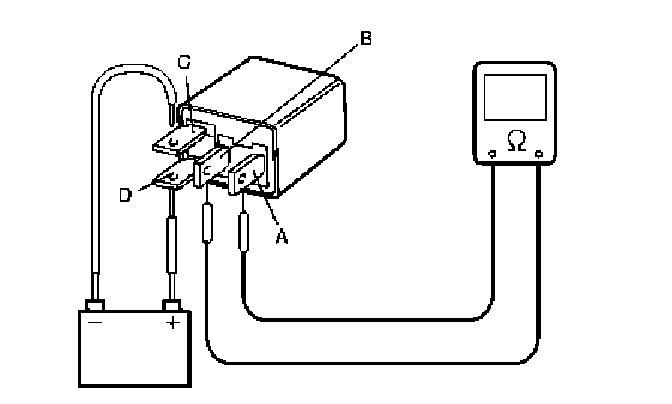 4. Check that there is continuity between terminals "A" and "B" when battery is connected to terminals "C" and "D".