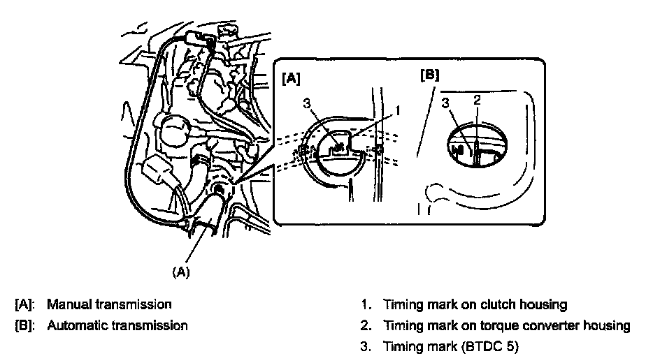 Ignition Timing Inspection and AdjustmentNOTE: Before starting engine, place transmission gear shift lever in "Neutral", and set parking brake.