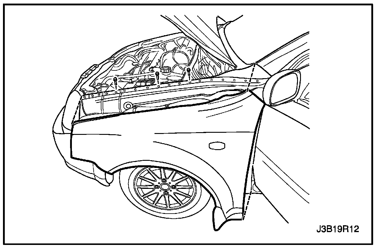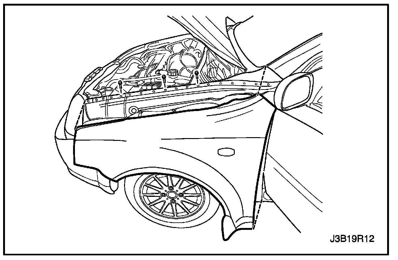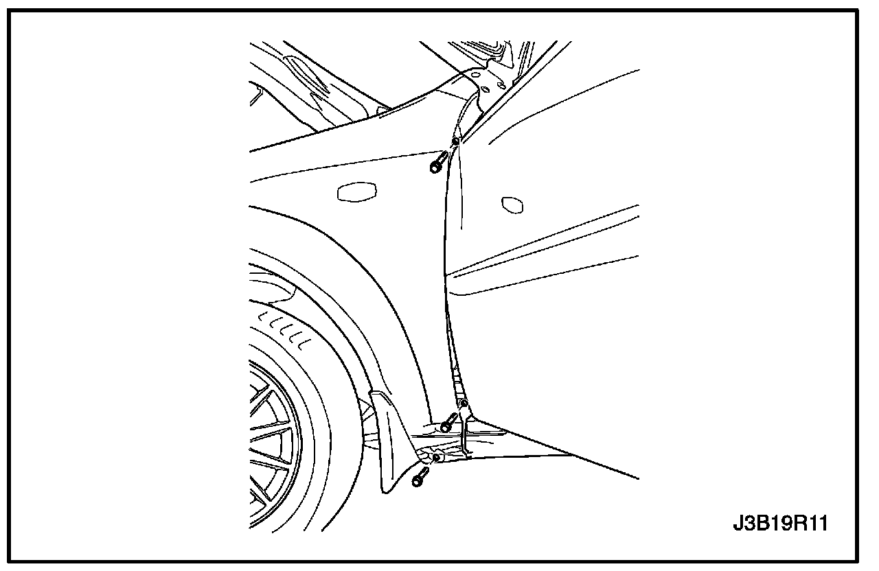 Tighten the front fascia-to-fender bolts to 2.5 Nm (22 in. lbs.).