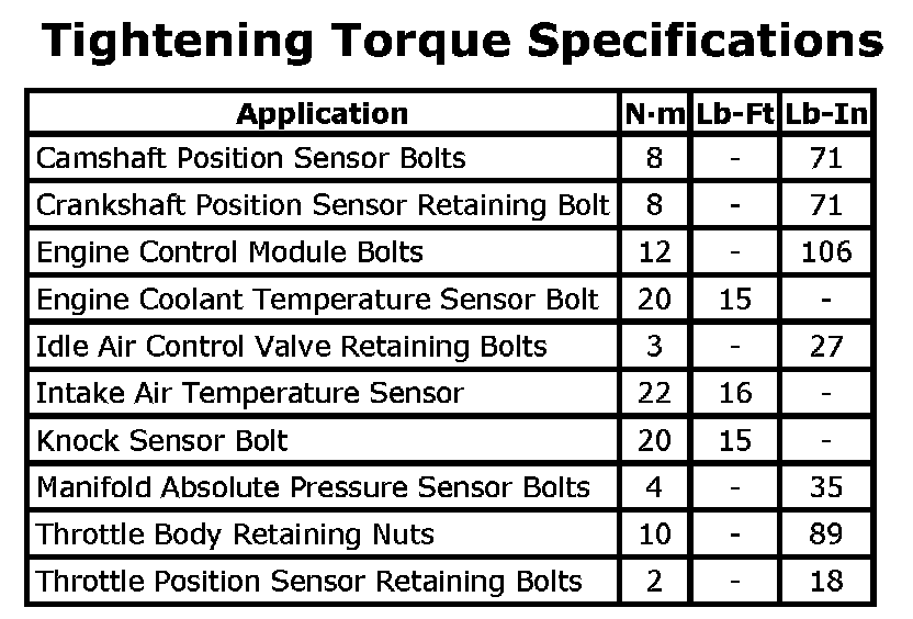 Tightening Torque Specifications:
