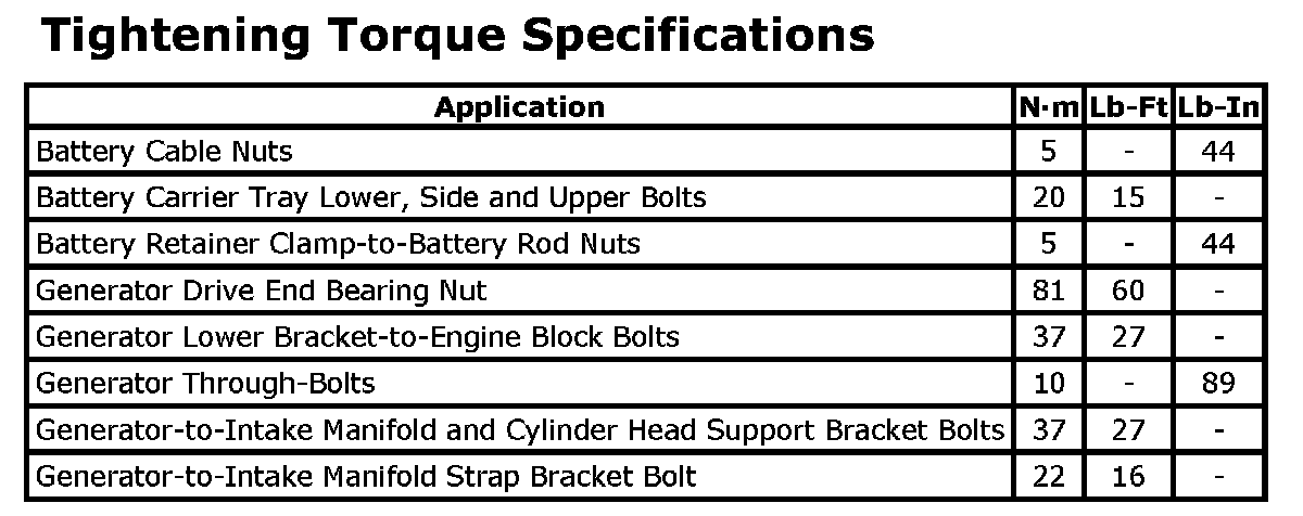 Tightening Torque Specifications: