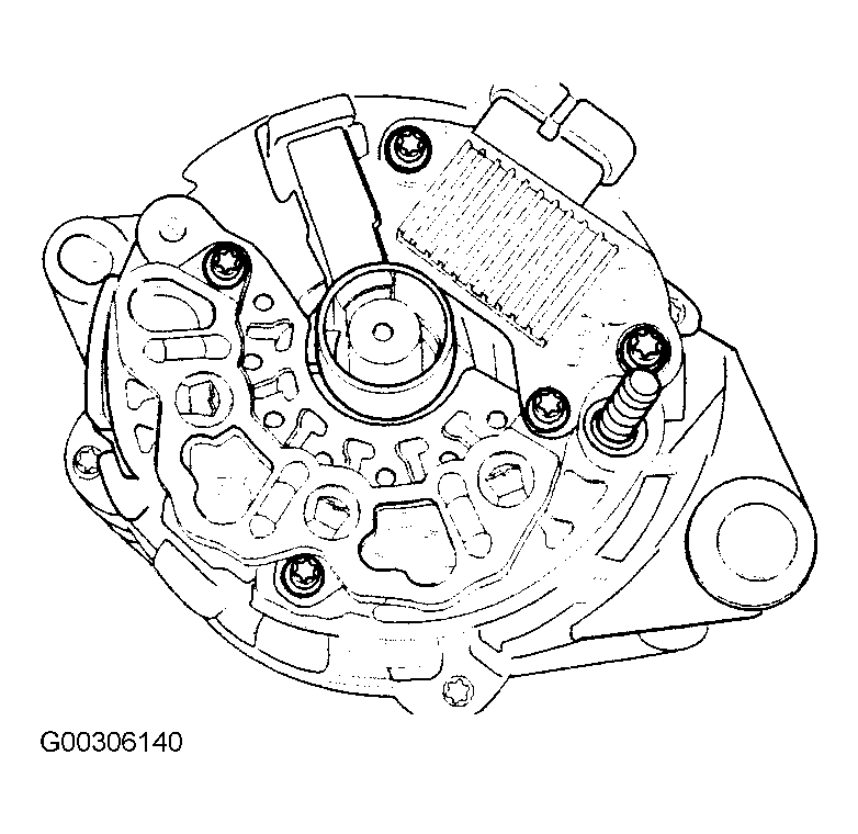 - Remove the stator connections from the rectifier bridge terminals by cutting the wires.