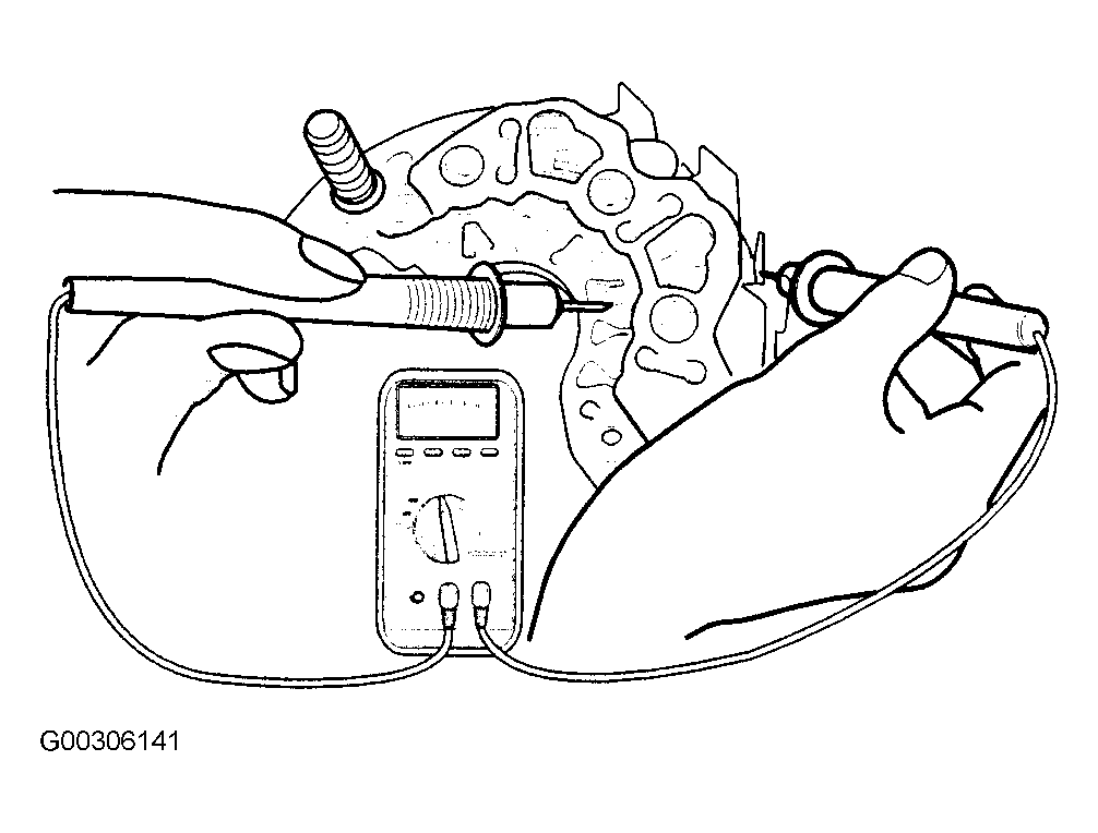 - Test the stator for an open circuit using the ohmmeter. See Fig 11.
