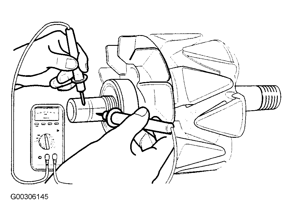 - Test the rotor for open and short circuits. The reading should be 1.7 to 2.3 ohms, or the rotor should be replaced. See Fig 7.