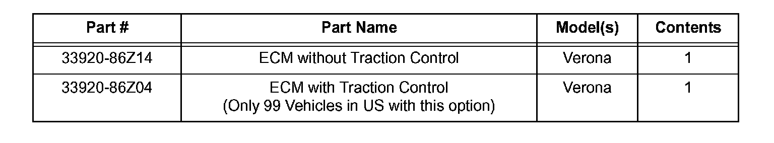Home >> Suzuki >> 2004 >> Verona L6-2.5L >> Repair and Diagnosis >> Powertrain Management >> Computers and Control Systems >> Engine Control Module >> Technical Service Bulletins >> All Technical Service Bulletins >> Recall - ECM Replacement for Engine Stalling