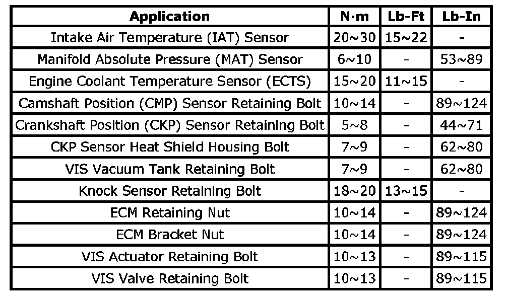 Tightening Torque Specifications: