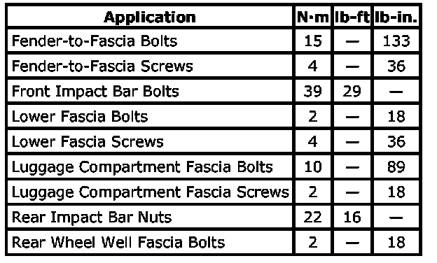 Tightening Torque Specifications: