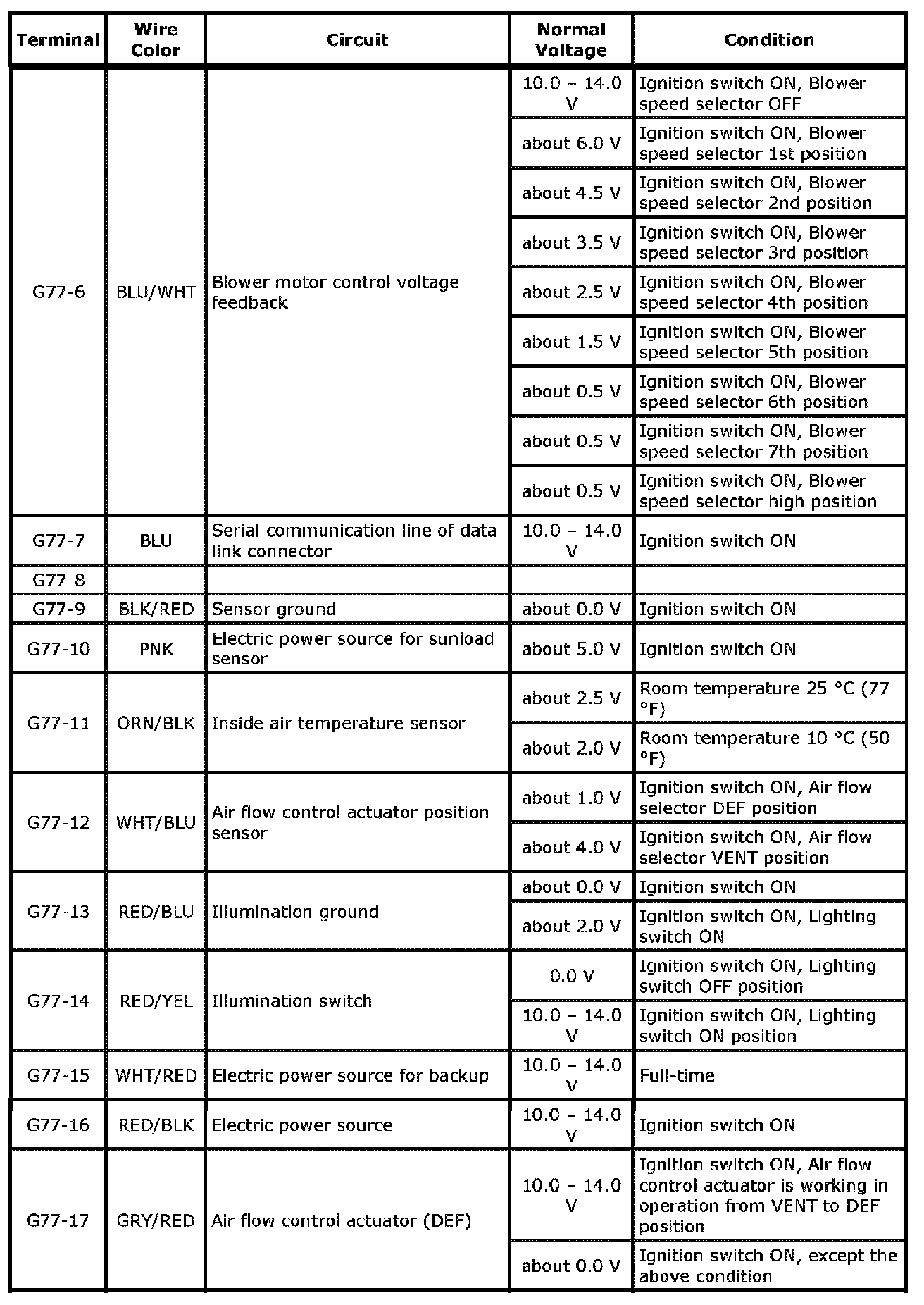 HVAC Control Module Voltage Table Part 2: