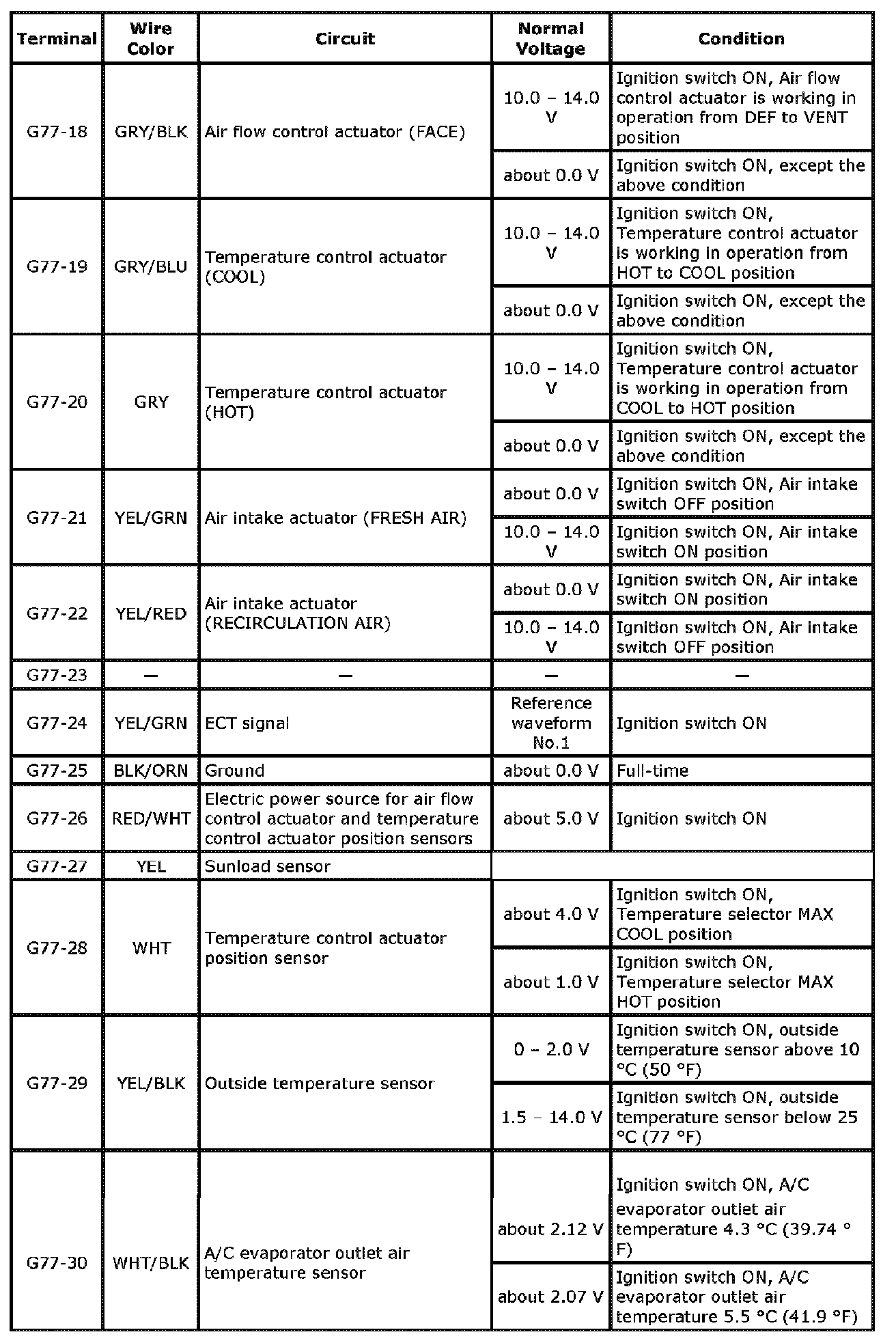 HVAC Control Module Voltage Table Part 1: