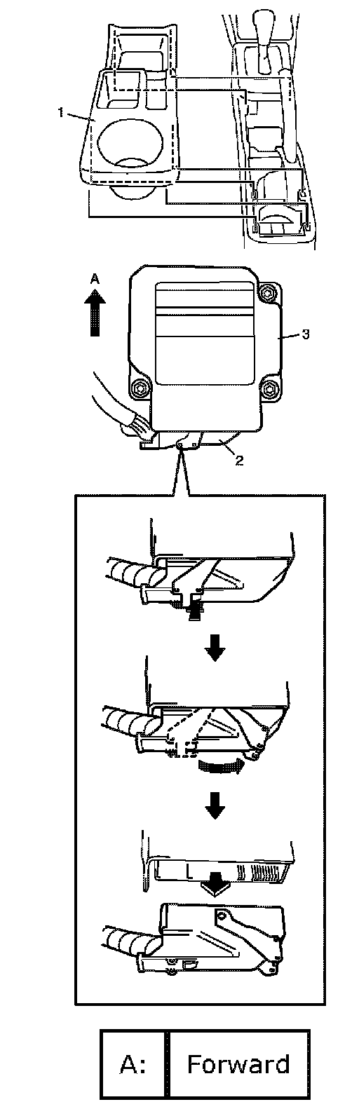 CAUTION: Ensure that arrow on the SDM is pointing toward the front of the vehicle.