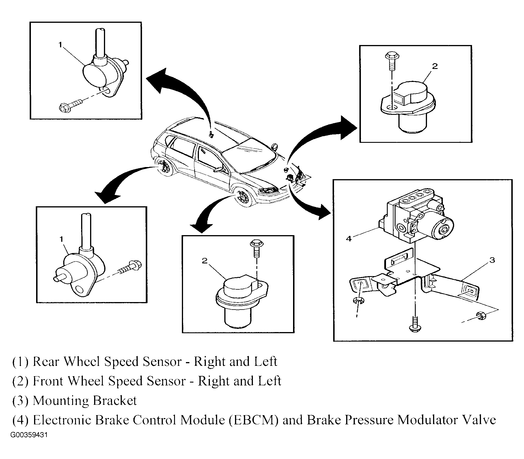 | Electronic Brake Control Module (EBCM) & Brake Pressure Modulator Valve | Left engine compartment. See Figure. |