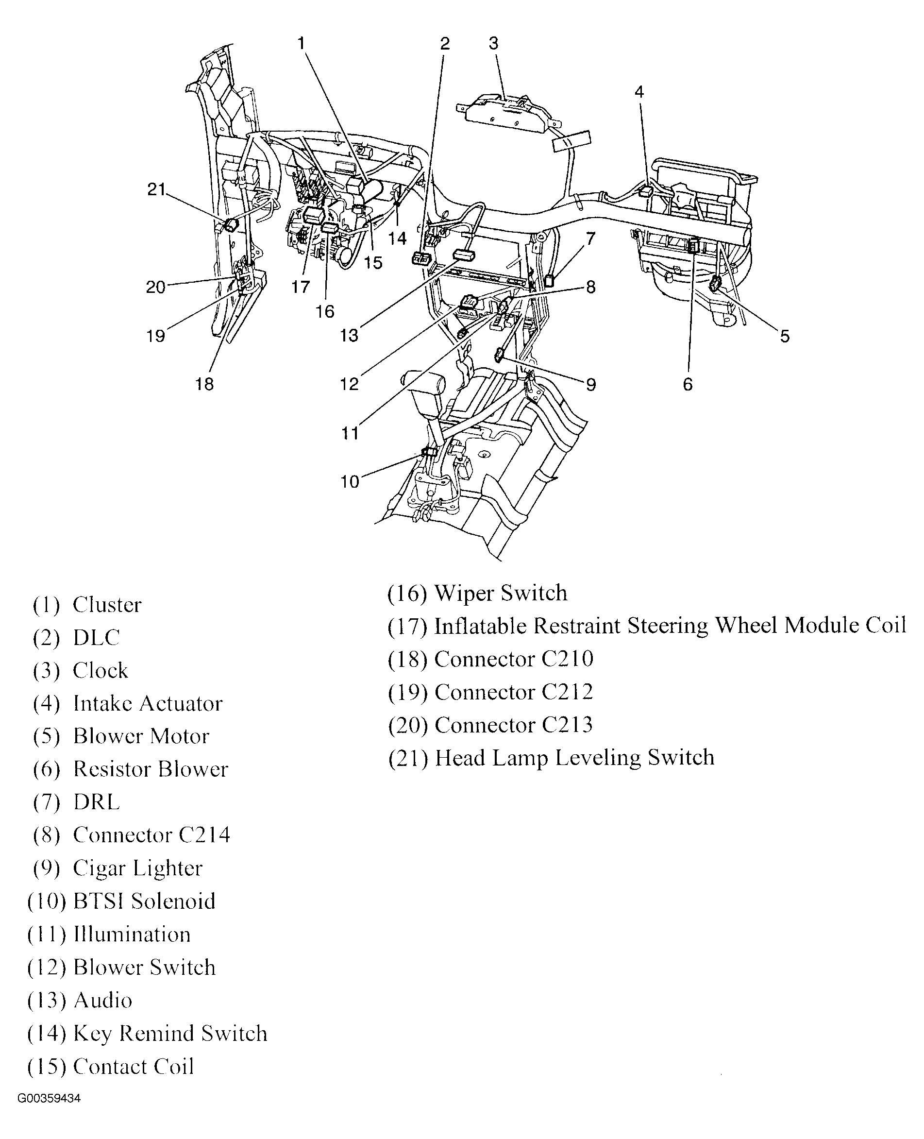 | DRL | Behind dash, right of center console. See Figure. |