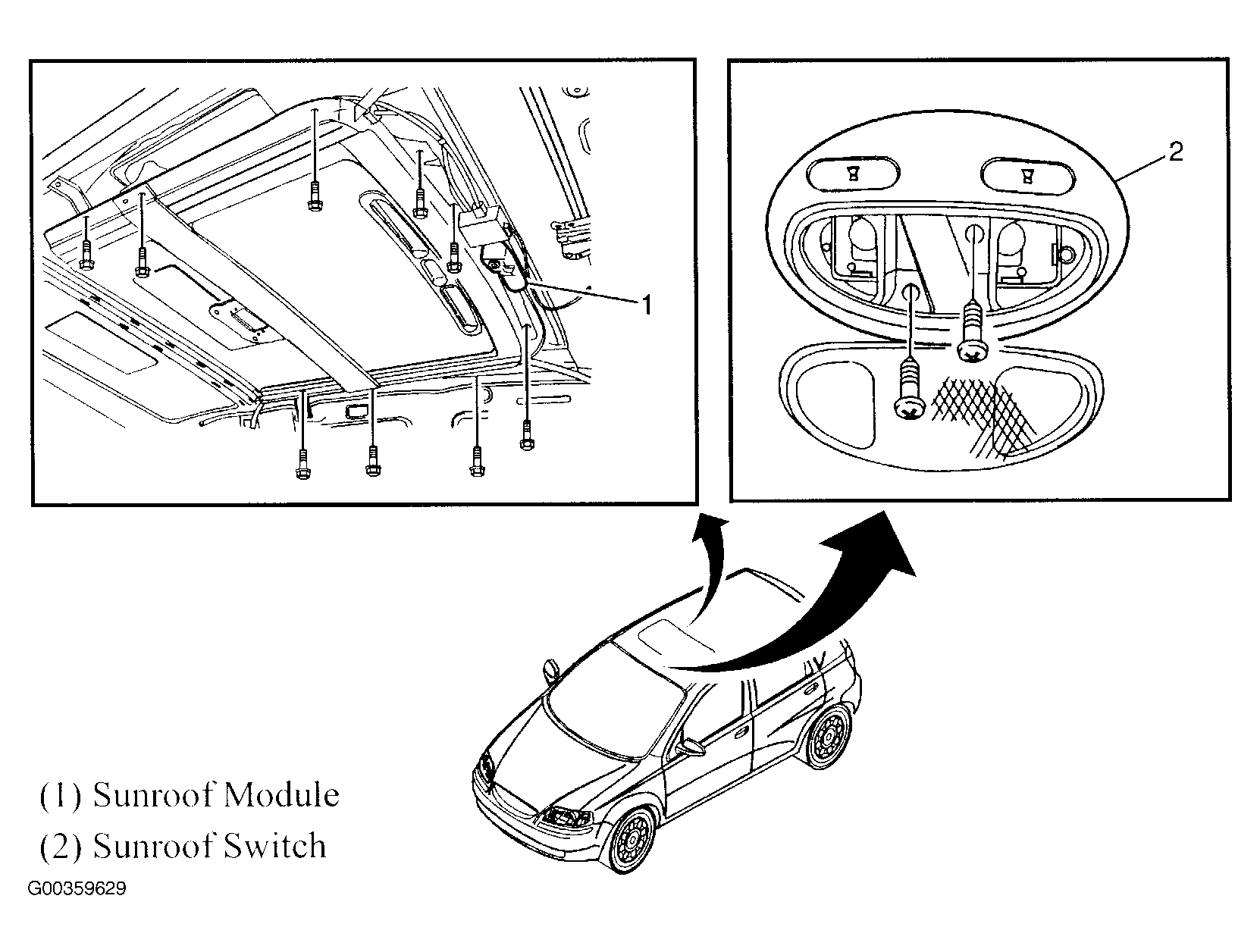 | Sunroof Module | In roof panel. See Figure. |