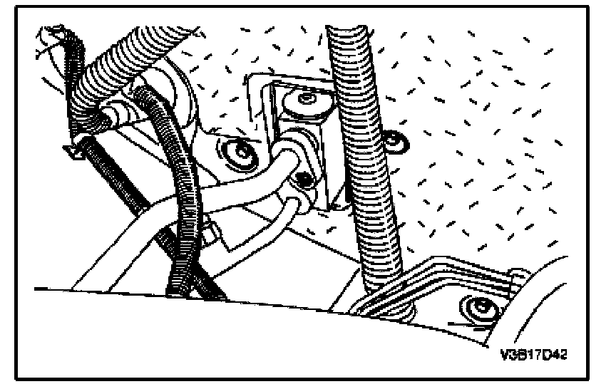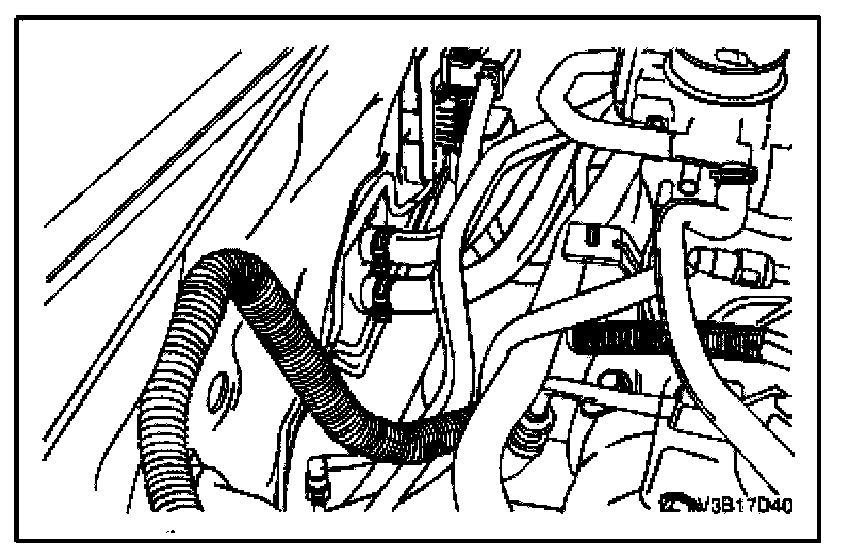 8. Compress the heater hose clamps at the fire wall and slide the clamps toward the engine.