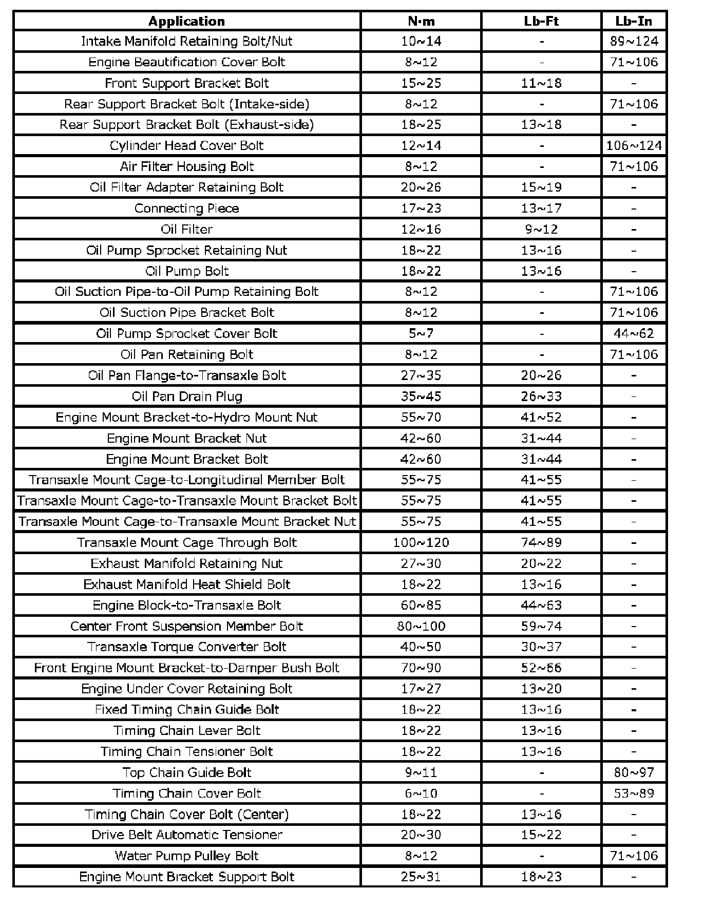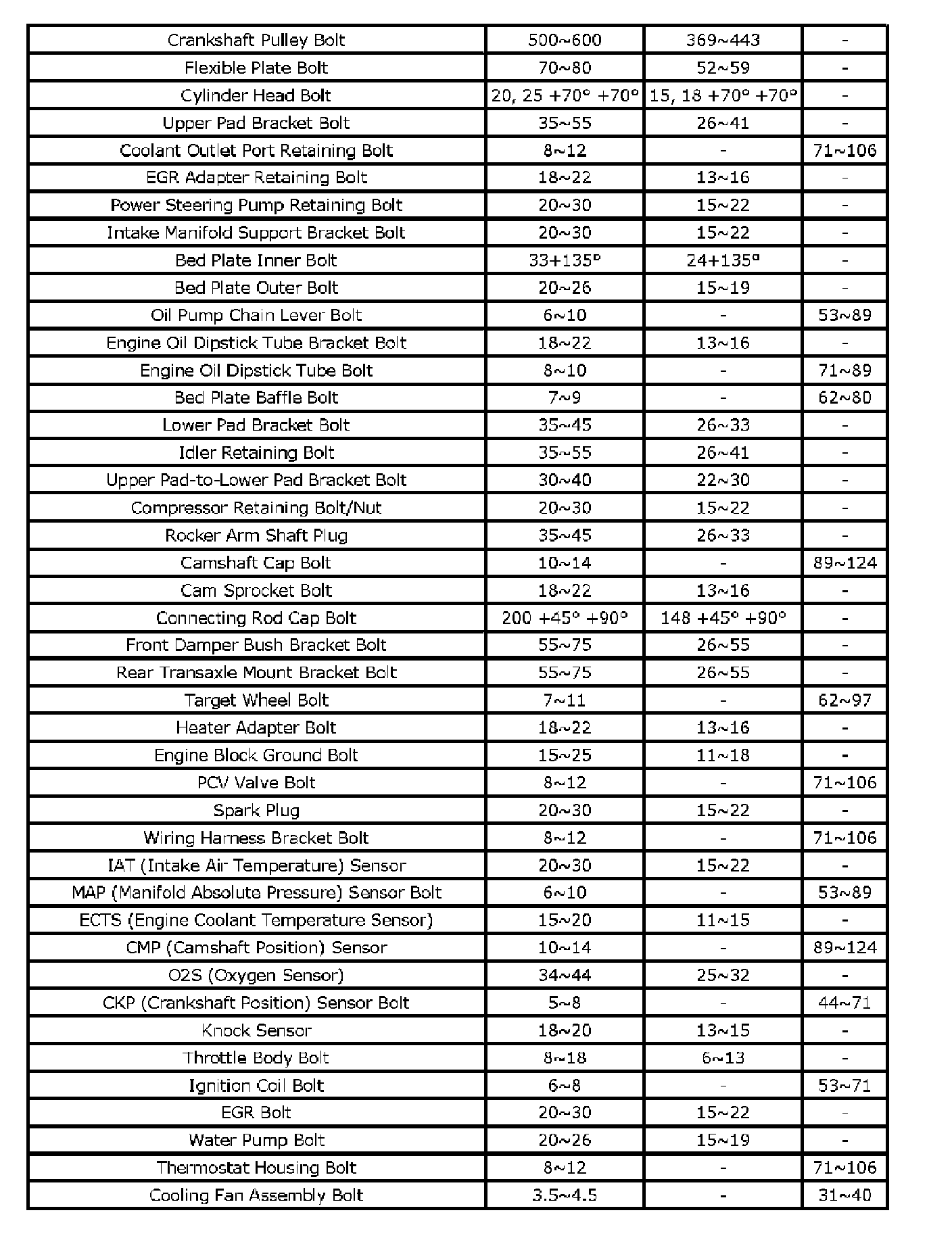 Torque Specifications