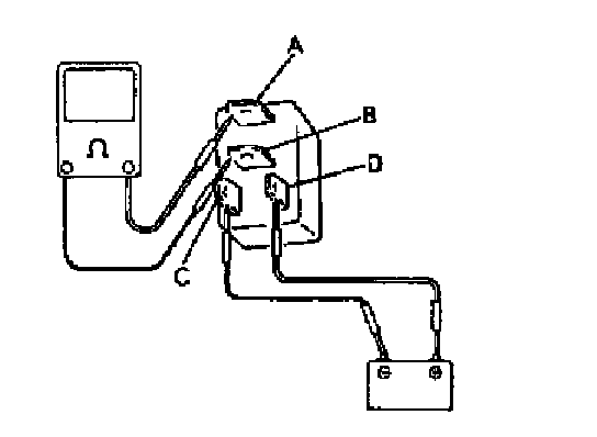 4. Check that there is continuity between terminals A and B when battery is connected to terminals C and D .