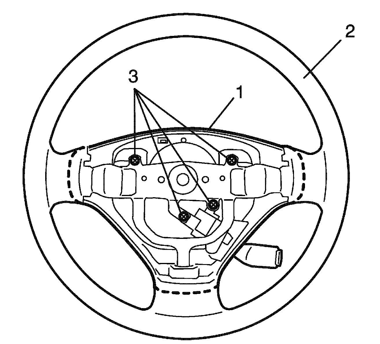 3. Remove steering wheel lower cover (1) from steering wheel (2) removing 4 screws (3).