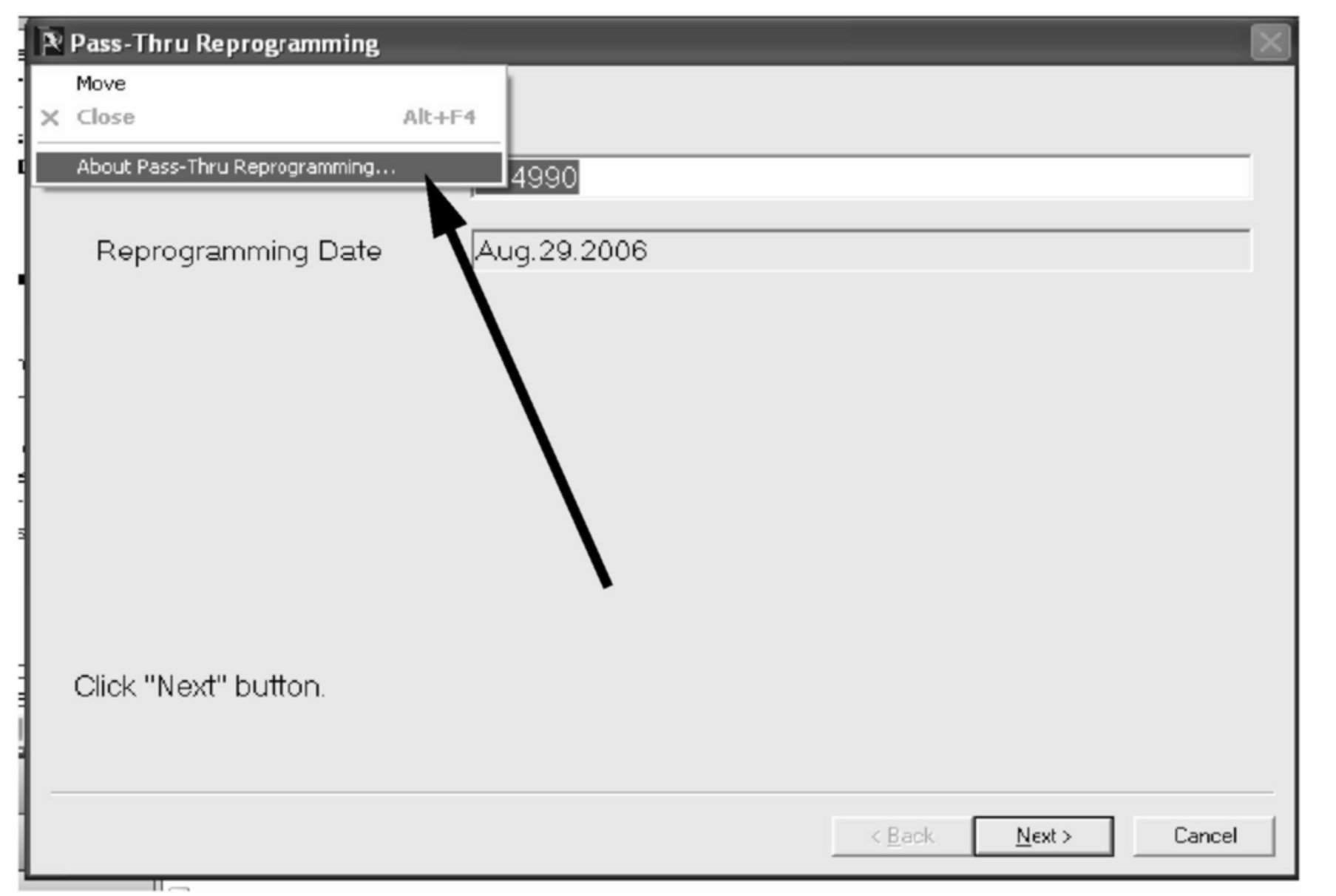 3. Version information is displayed. If you do not have the latest version, you must download the Pass-Thru Reprogramming Software and install it then download the Database and install it.