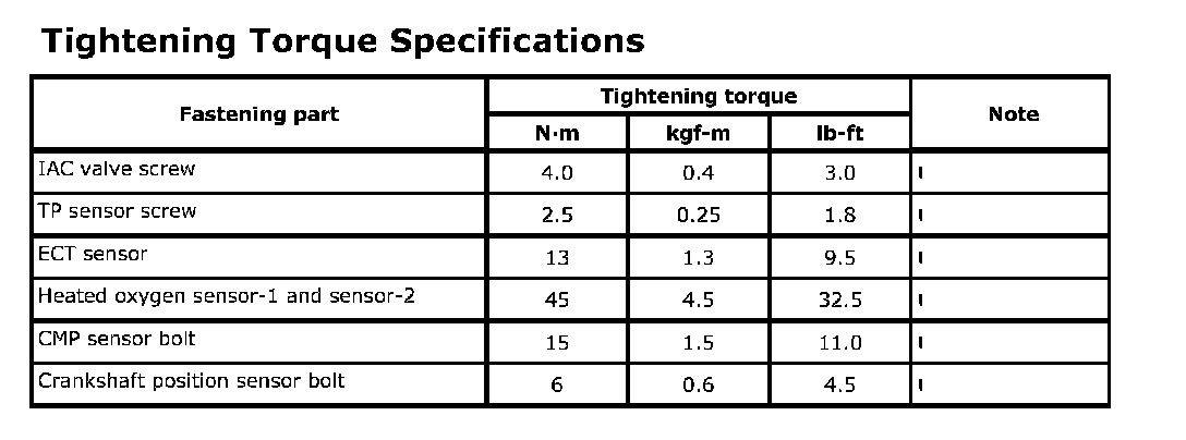 Reference: For the tightening torque of fastener not specified, refer to Fasteners Information.