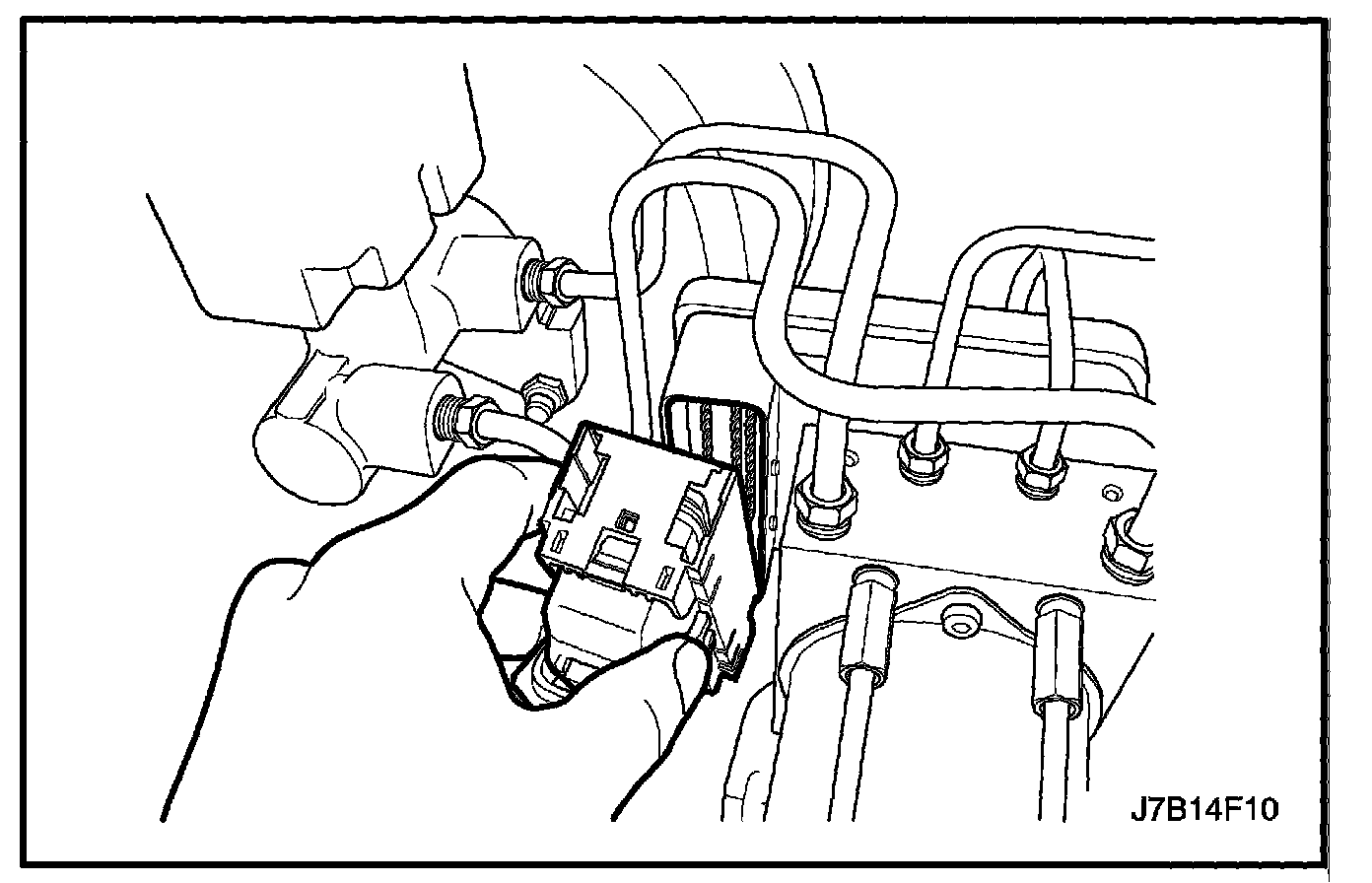 6. Move the brake pipes aside far enough to allow for lifting the ABS unit out of the mounting bracket.