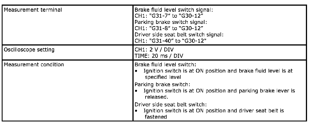 Brake fluid level, parking brake or driver side seat belt switch signal (1)