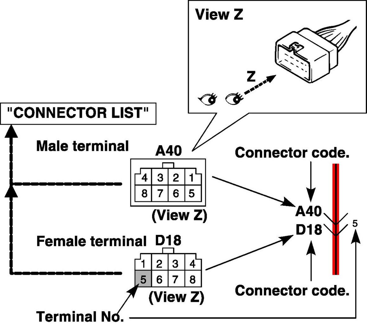 How to Read Connector Codes and Terminal Nos.
