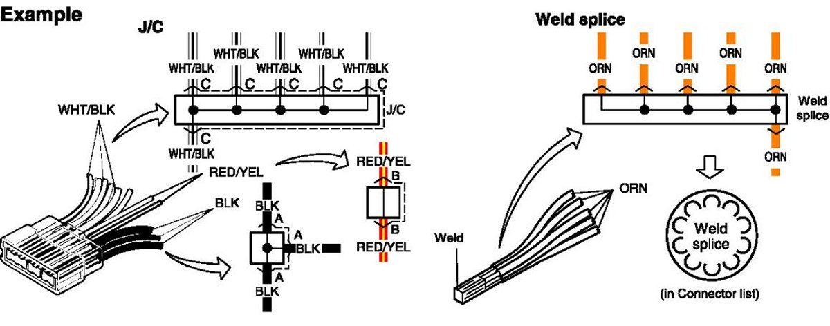 - The joint connector (J/C) connects several different wires with the same wire color at one place instead of connecting them by welding or caulking one by one. It is not an ordinary connector but a part of the continuous wire in the harness.