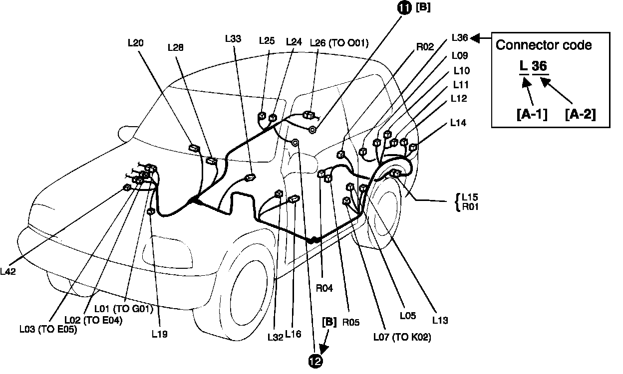 L: Floor harness, G sensor wire (Fuel pump harness)