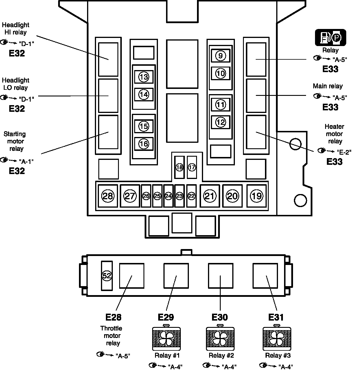 Main Relay (Computer/Fuel System): Locations