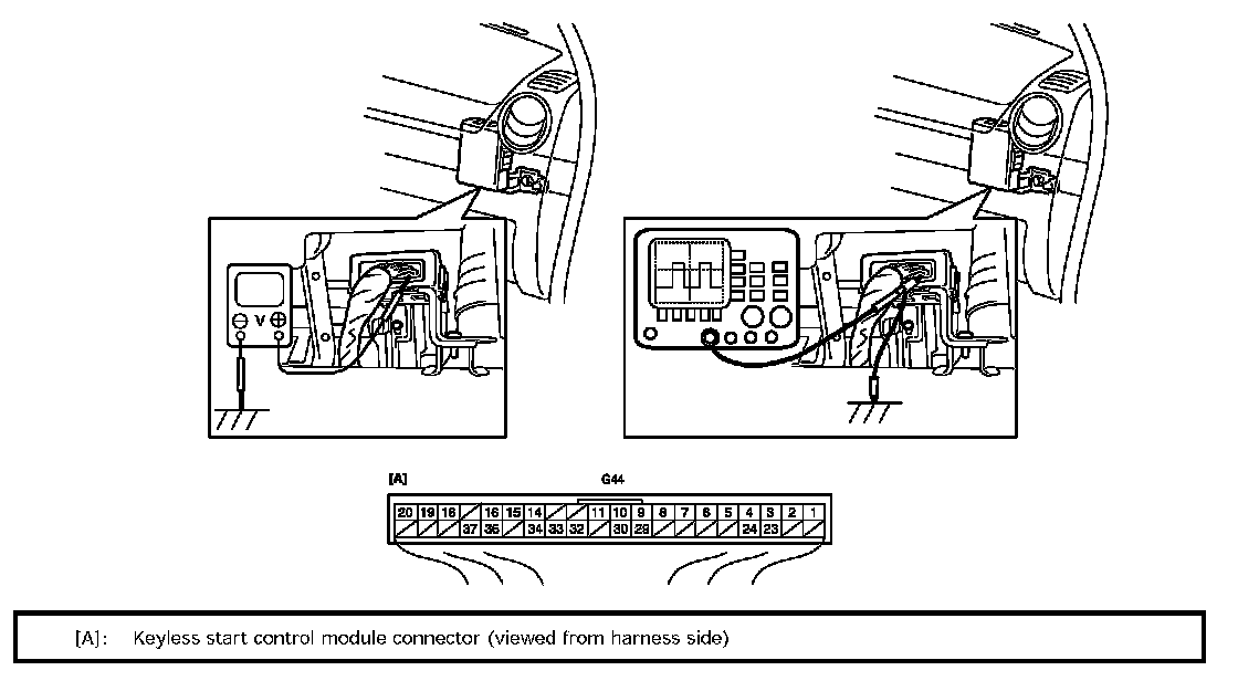 CAUTION: Keyless start control module cannot be checked by itself. It is strictly prohibited to connect voltmeter or ohmmeter to keyless start control module with coupler disconnected from it.