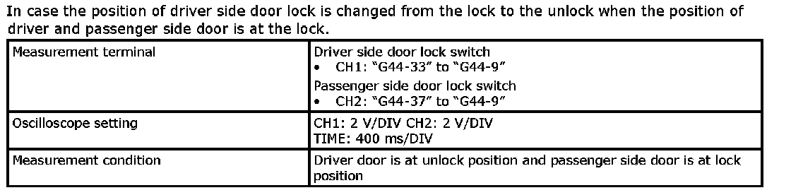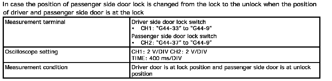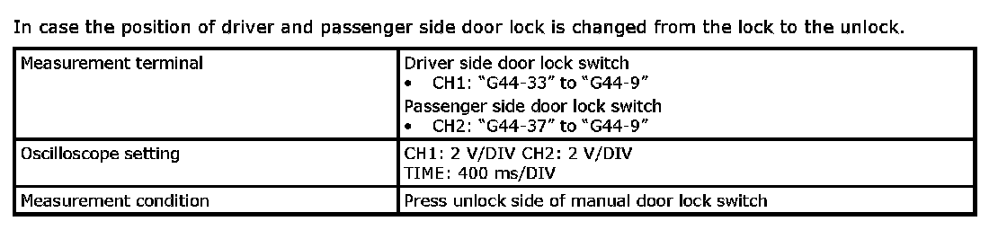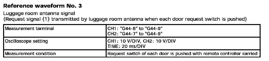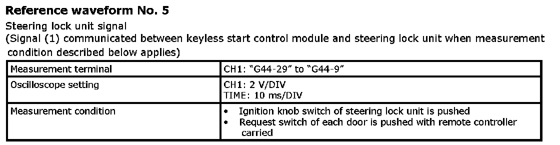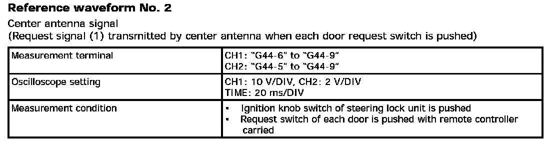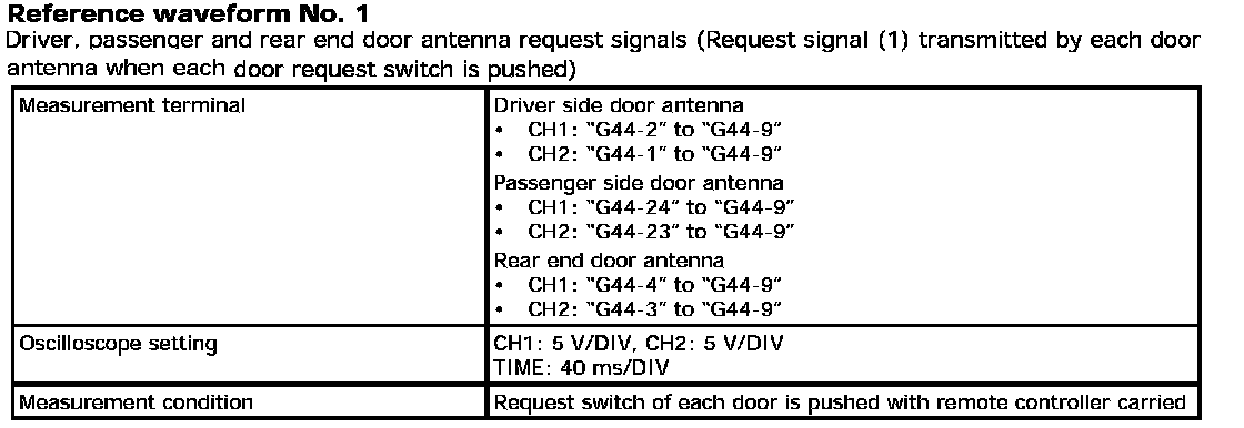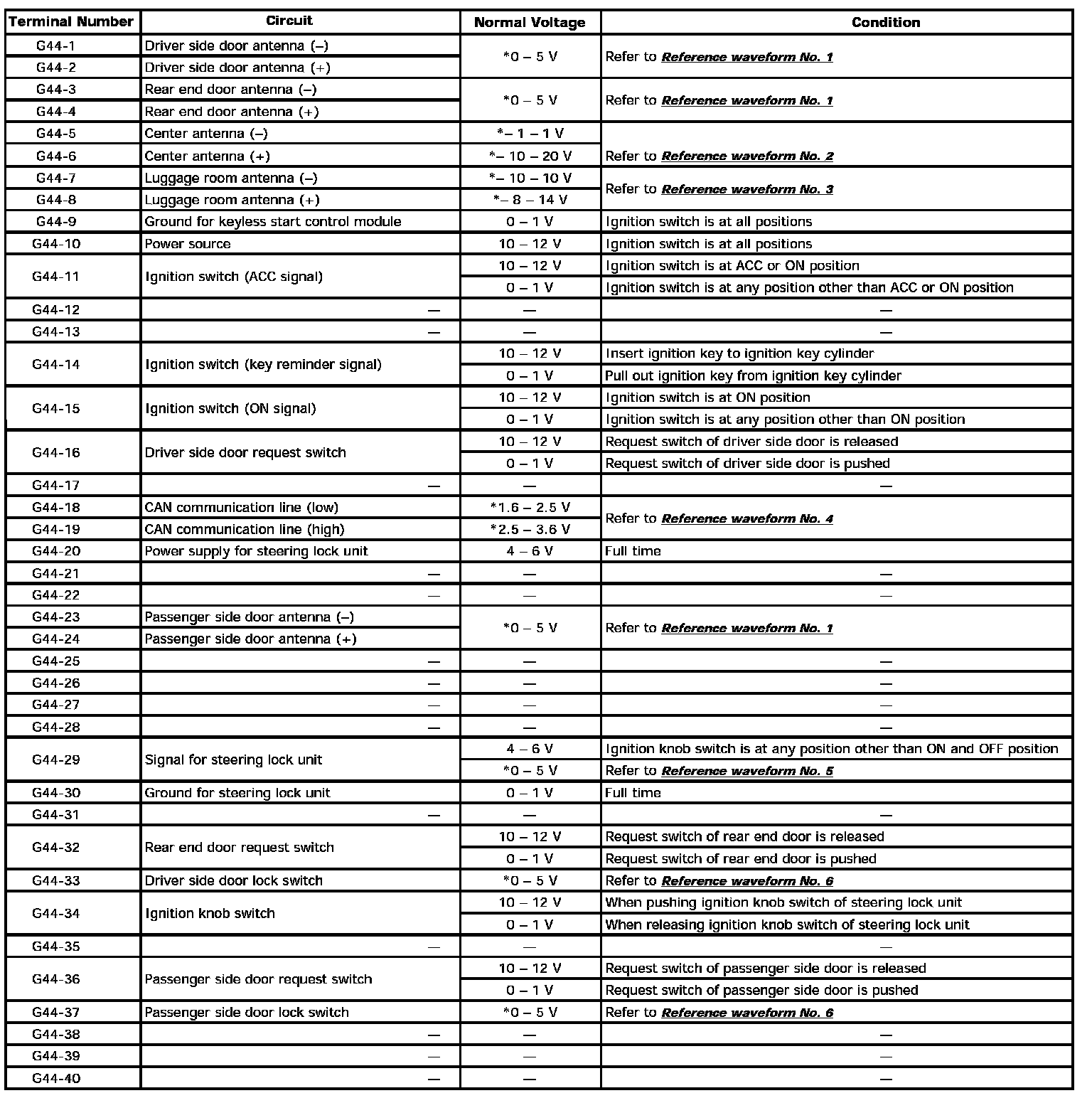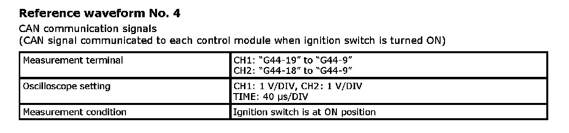 - As each terminal voltage is affected by the battery voltage, confirm that it is 11 V or more when ignition switch is ON.