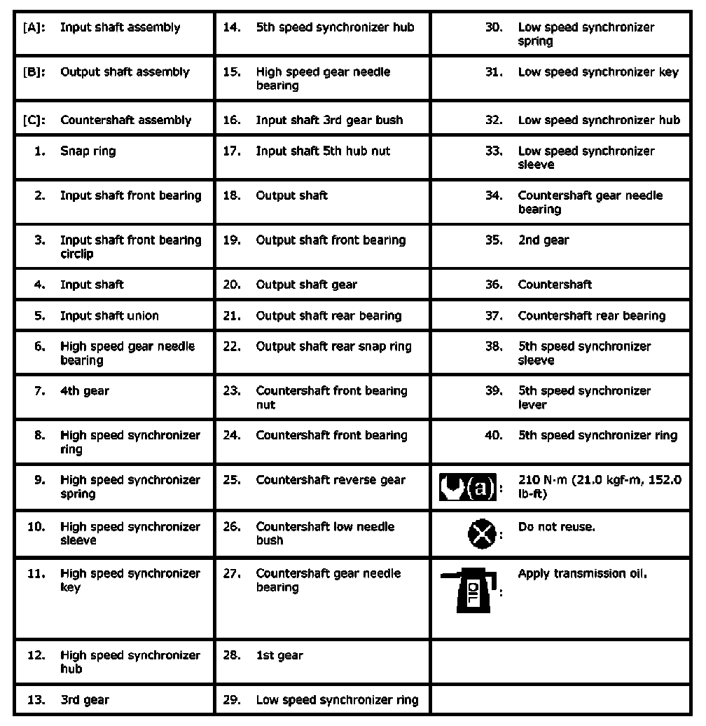 Input Shaft Assembly, Output Shaft Assembly and Countershaft Assembly Components