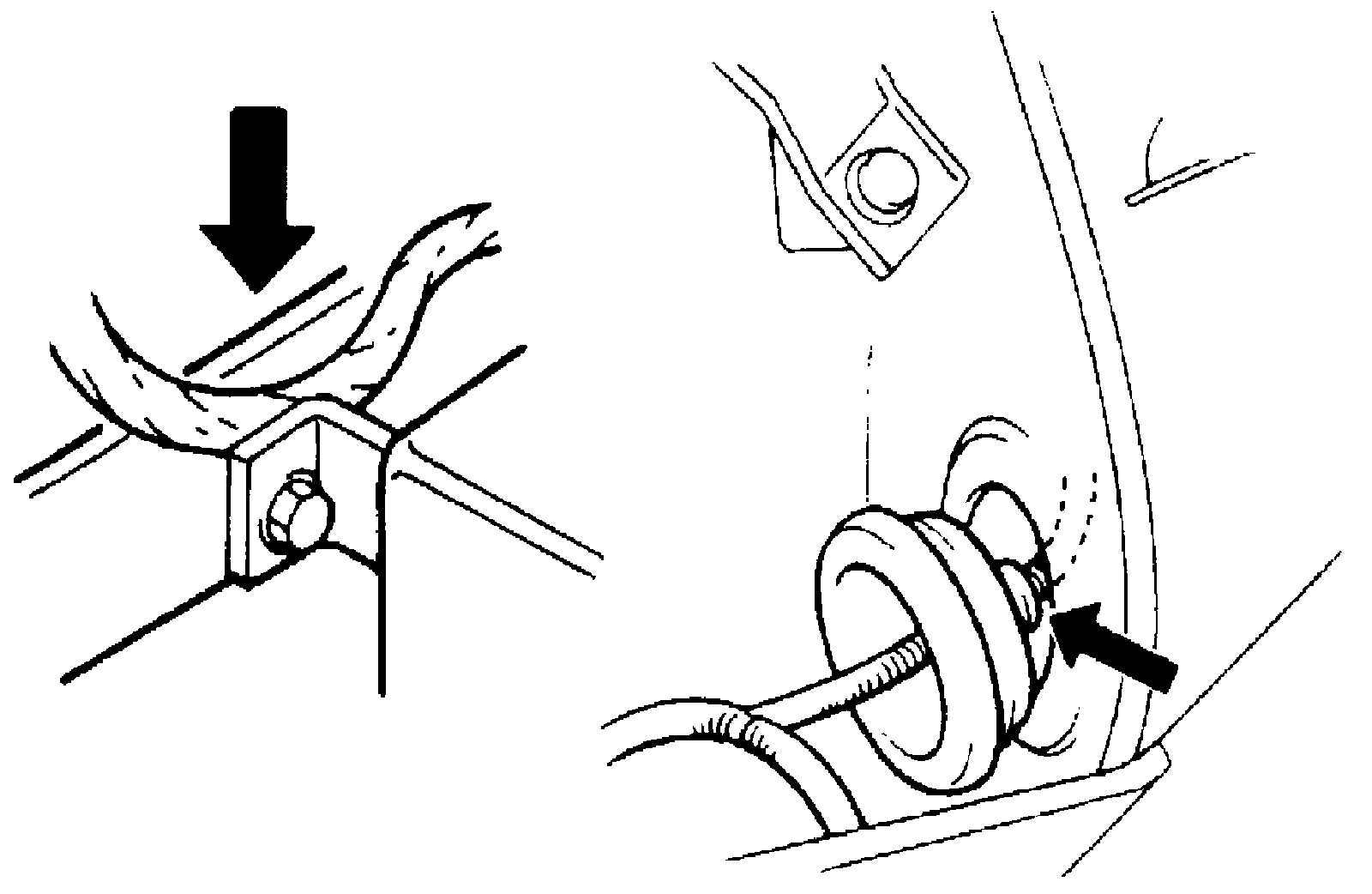 ^ Wire insulation which is rubbed through, causing an intermittent short as the bare area touches other wiring or parts of the vehicle.