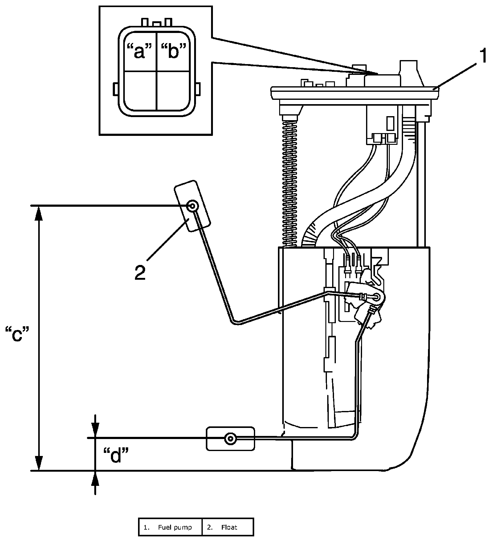 ^ Check resistance between terminals "a" and "b" at each float position in the following. If the measured value is out of specification, replace.