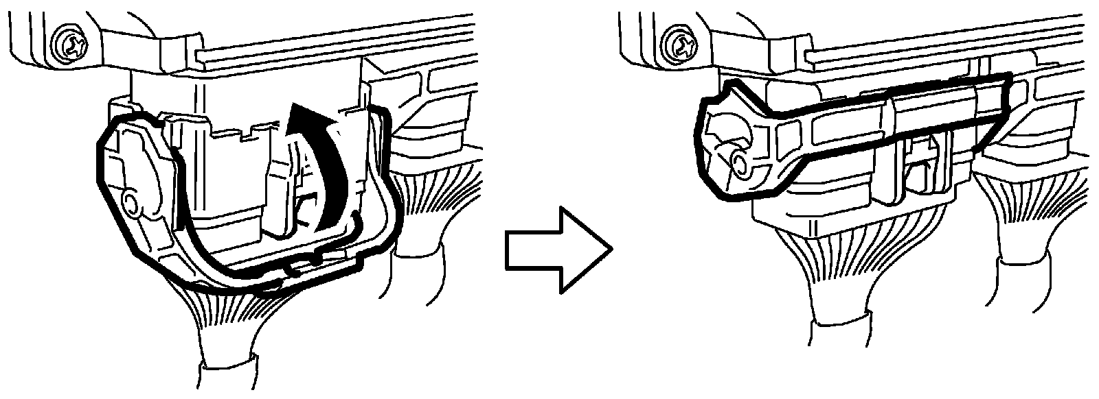 c. Lock ECM connectors securely by pulling its lock lever up.