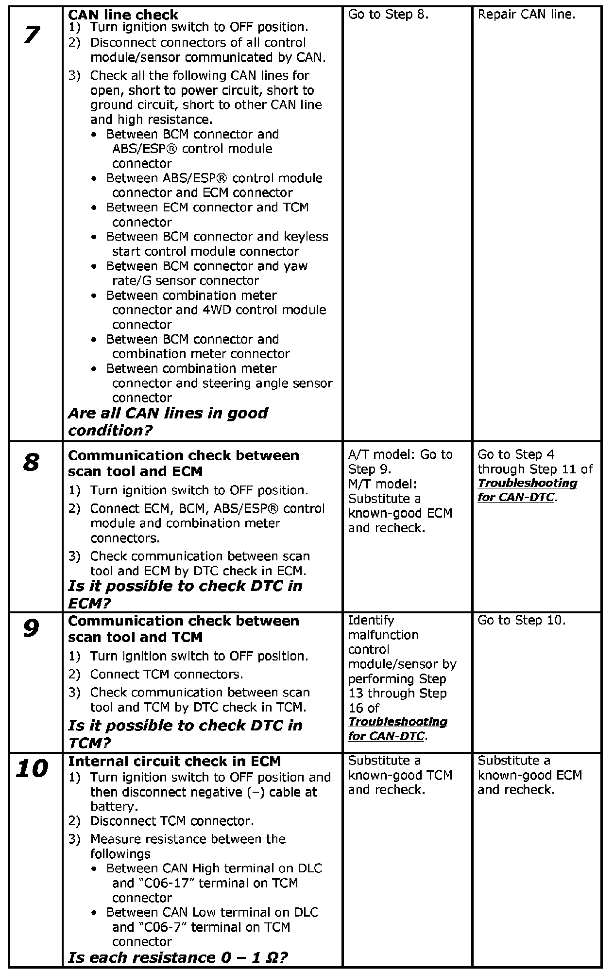 Troubleshooting for Communication Error with Scan Tool Using CANPerform this troubleshooting when it is not possible to communicate between scan tool and ECM/TCM.
