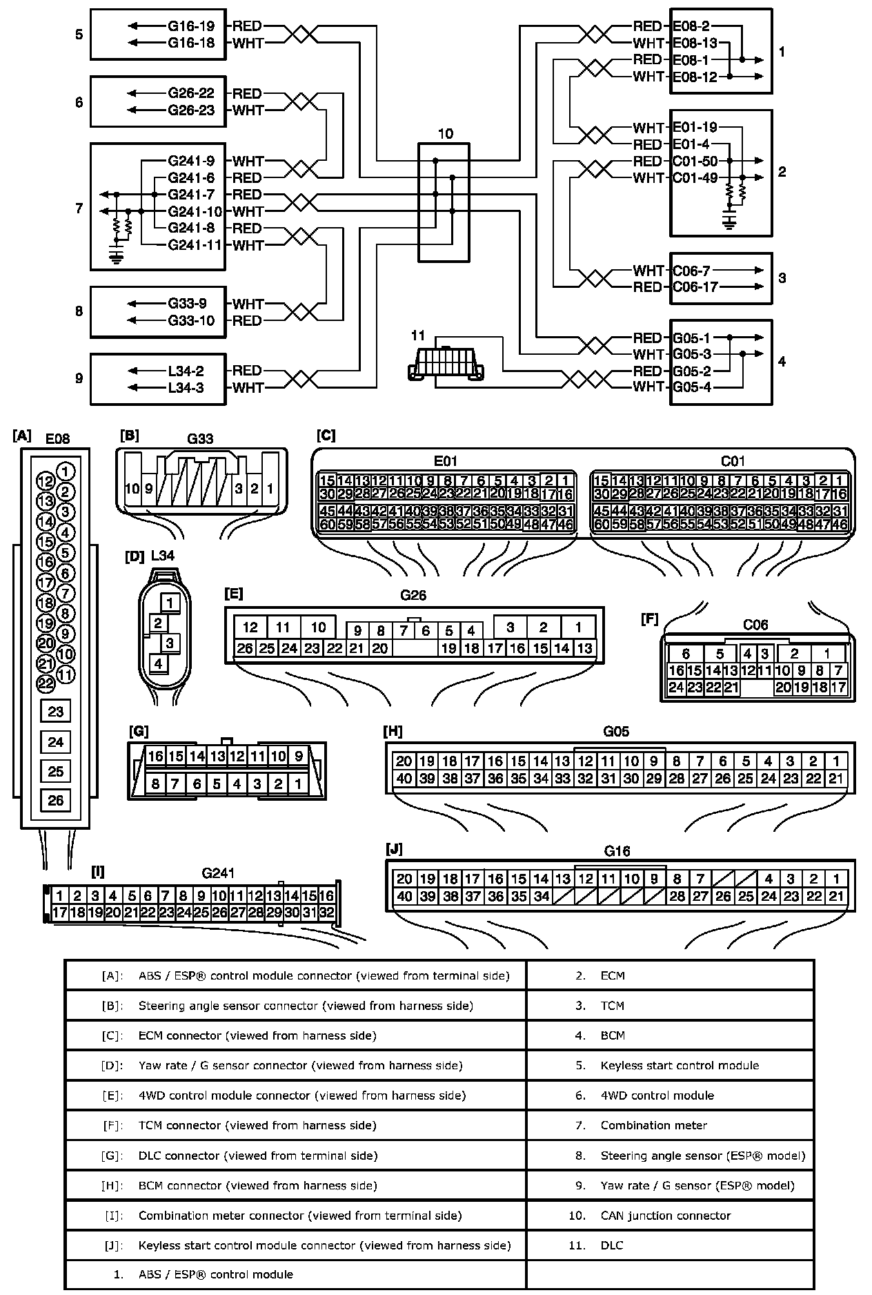 ^ When disconnecting each control module connector in this troubleshooting, various DTCs will be detected. Be sure to clear DTCs in the following control modules after completing this troubleshooting.